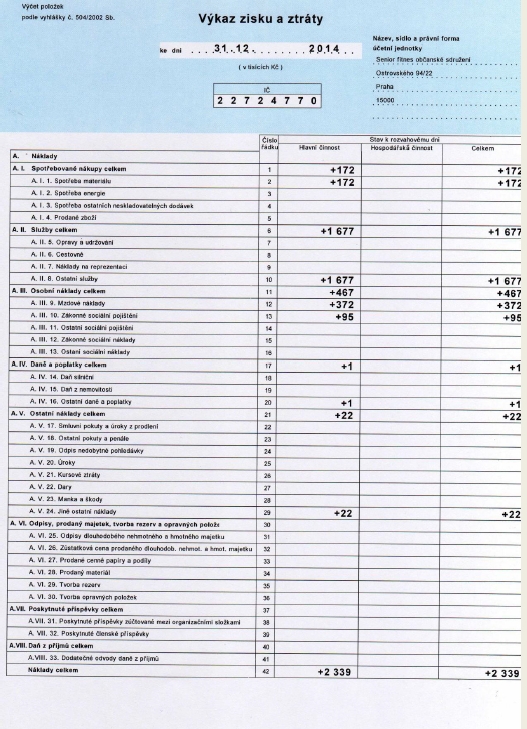 Mzdová hladina zaměstnanců Senior fitnes byla v roce 2014 v průměru 8.500 Kč hrubého a všichni zaměstnanci byli podporováni Úřadem práce.