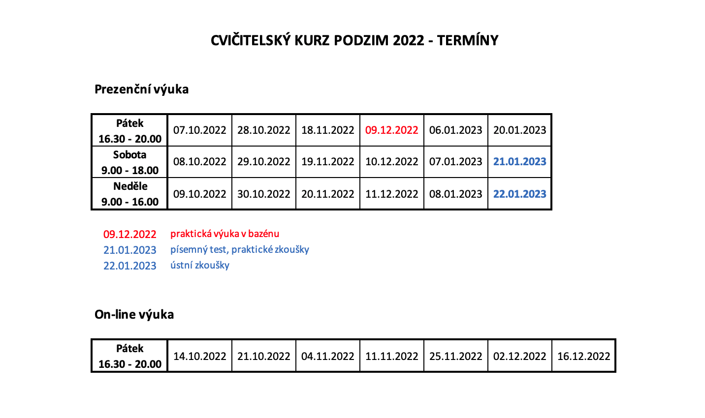 Účast na všech lekcích (zejména na prezenčních praktických lekcích) je povinná.