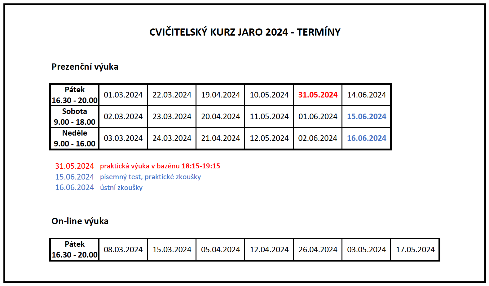 Účast na všech lekcích (zejména na prezenčních praktických lekcích) je povinná.