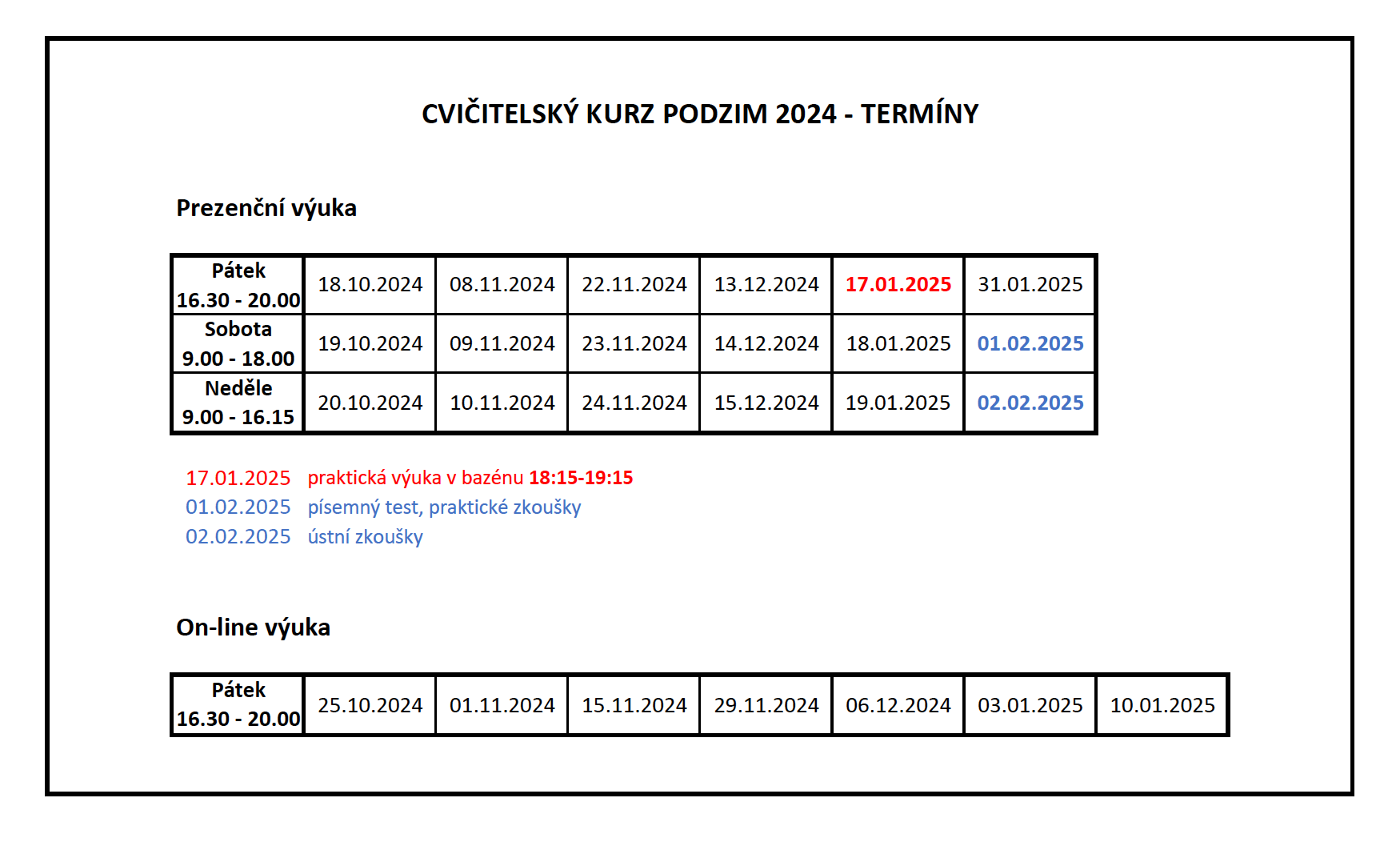 Účast na všech lekcích (zejména na prezenčních praktických lekcích) je povinná.