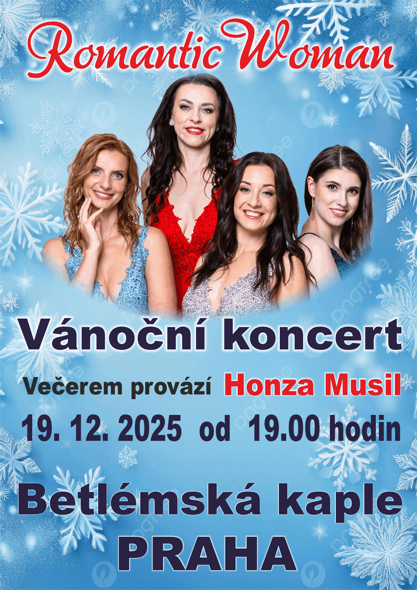 Czech Rock Music s.r.o. zve na vánoční koncert nového seskupení Romantic Woman, který se uskuteční v Betlémské kapli v pátek 19.12.2025 od 19 hod.