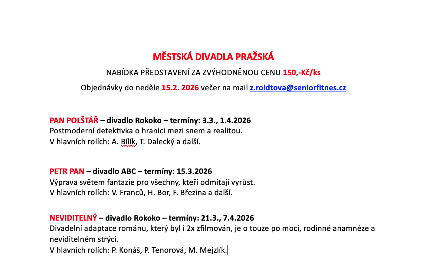 - úterý 10.2.2026 od 14.00 / Suchý+Šlitr, Voskovec+Werich, Vodňanský+Skoumal / mezigenerační centrum Mezi námi, Pujmanové 1219/8, Praha 4
