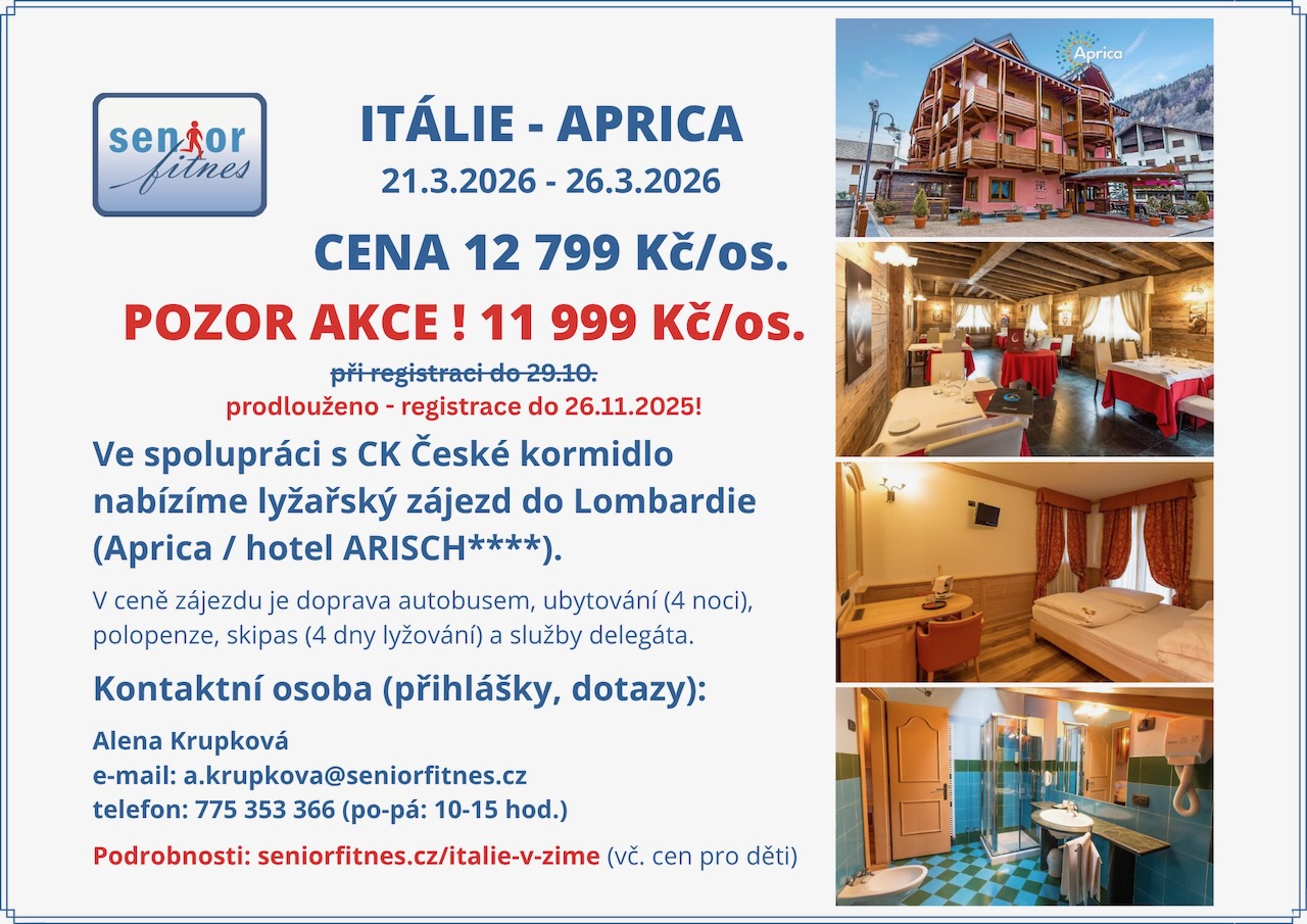 POZOR, akce prodloužena! Zvýhodněná cena platí při registraci do 26.11.2025 / úhradě registračního poplatku (700 Kč/os.) do dvou dnů od registrace. Zbytek ceny se hradí přímo CK ve třech splátkách (viz níže).