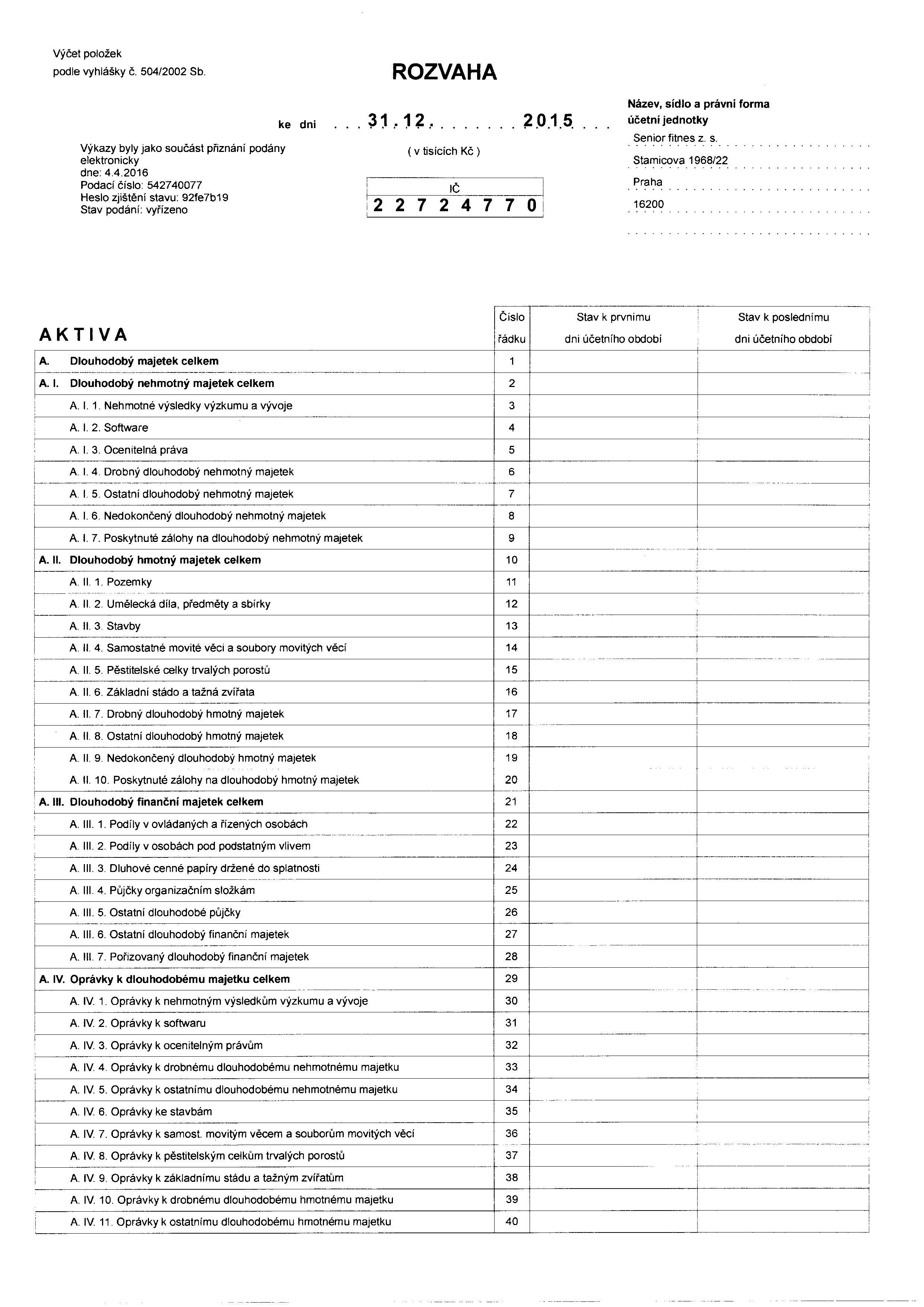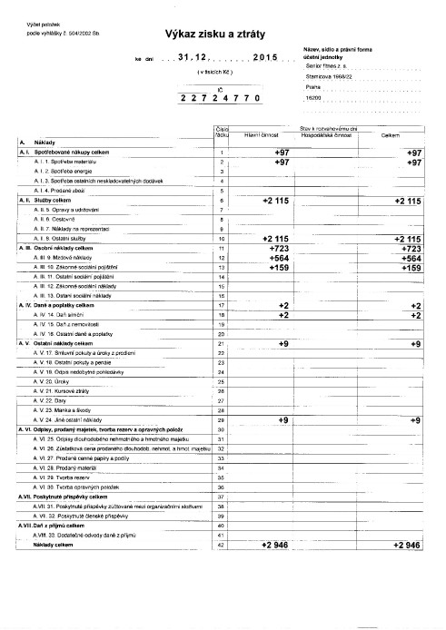 Rozpracování aktivit a činnosti Senior fitnes o.s. v r. 2015